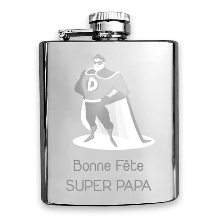 Un cadeau personnalisé très original pour la fête des pères, celui-ci appréciera forcement ce cadeau gravé qu'il pourra emporter partout avec lui ou qu'il mettra sur son bureau. Gravez-y dessus le texte de votre choix, "bonne fête papa" "on t'aime papa" "joyeux anniversaire papa", les paroles de sa chanson préférée, gravez une date importante à ses yeux, comme le jour de votre mariage ou la naissance de ses enfants. Comme flasque gravée personnalisée d'anniversaire ou comme flasque pour une date symbolique, vous êtes sur de l'effet whaou de ce cadeau gravé original.