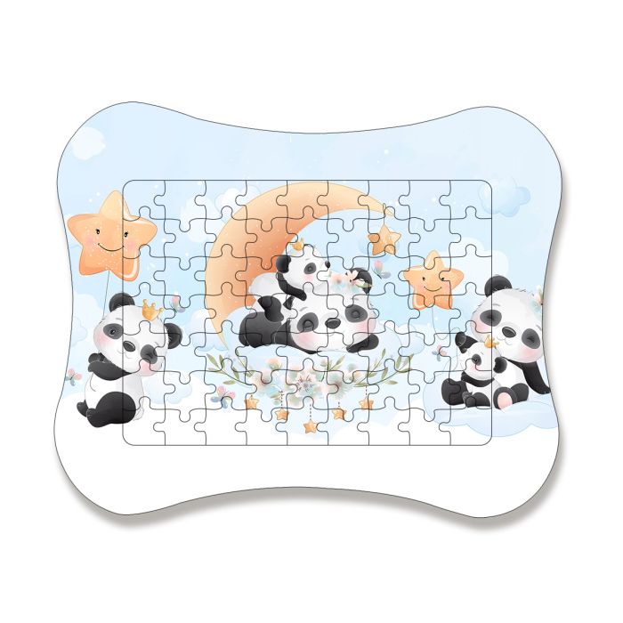 Puzzle personnalisé de 63 pièces. Puzzle personnalisé en carton avec son cadre. 63 pièces de puzzle rectangulaire de 180 mmx 130 mm disposées au centre du chassi. Surface blanche effet brillant.