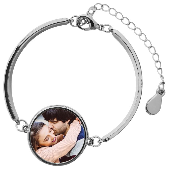 Quelle femme n’adorerait pas ce très joli bracelet style jonc à personnaliser au cœur du cercle ? Ce modèle raffiné fera honneur à vos tenues et la photo que vous choisirez ravivera vos meilleurs moments ! Peut-être y ajouter le portrait d’un amoureux ou un chiffre porte-bonheur. À vous de déterminer ce qui sera au centre de votre attention.