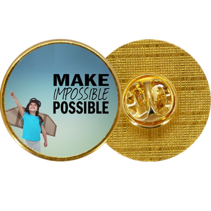 Ce pin’s doré ne se contente pas d’être un accessoire élégant. Il est conçu comme une pièce unique, façonnée à l’unité selon votre envie. Que vous y placiez une photo souvenir, un logo d’entreprise ou un message fort, chaque création raconte une histoire. Loin des productions standardisées, ce badge rond en métal doré est réalisé sur-mesure, pour devenir un objet à la fois symbolique, esthétique et personnel.